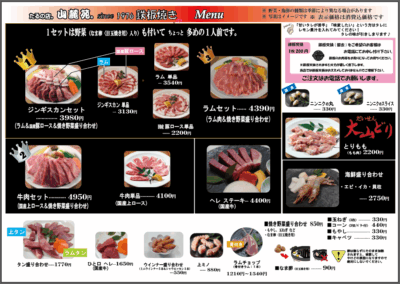 創業以来の定番で山麓苑の看板メニューです。樽の中でかんてき(七輪)炭火で鉄板を介し、食べやすいオーストラリア産のラム(仔羊)肩ロースを召し上がっていただいております。